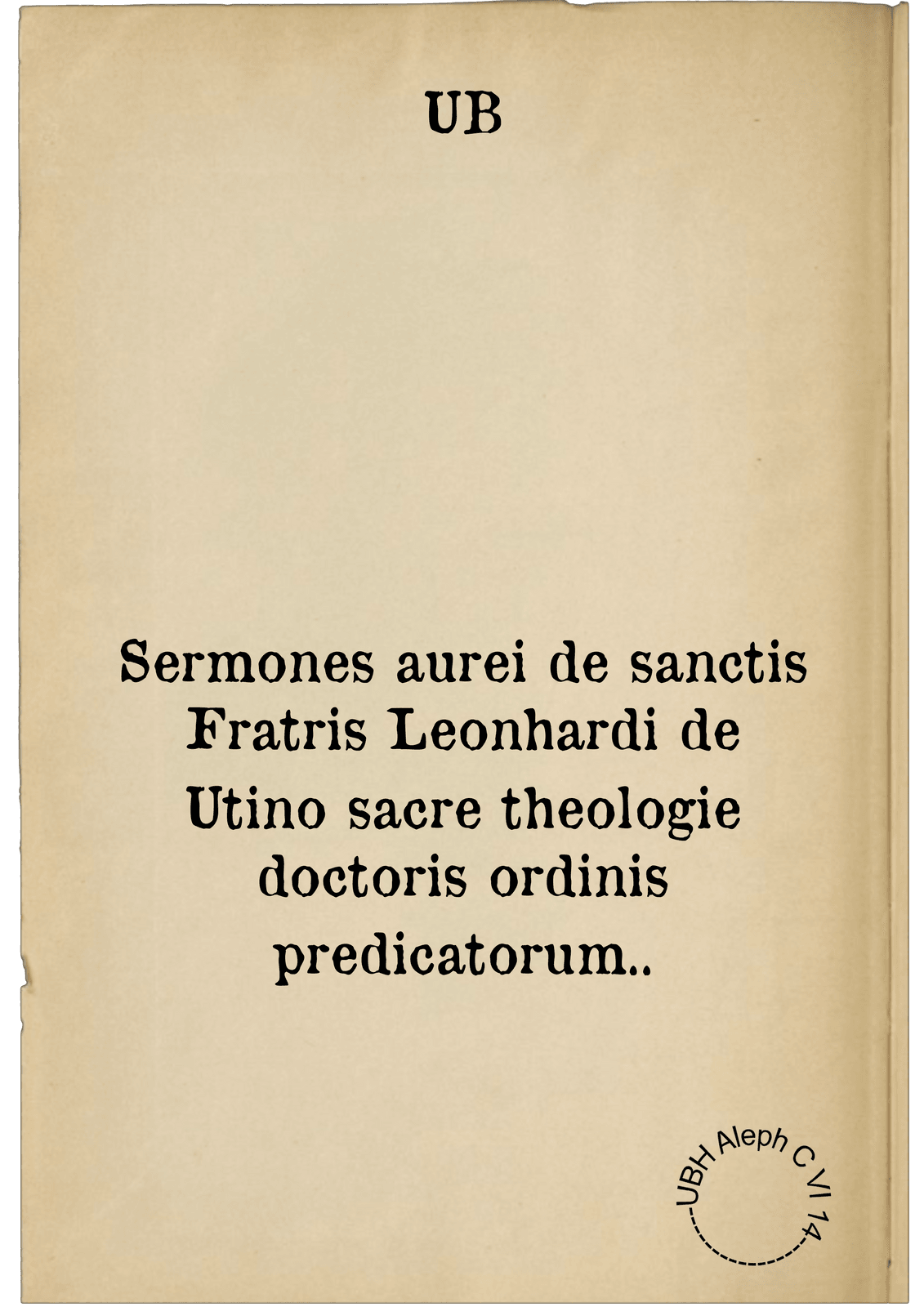 Sermones aurei de sanctis Fratris Leonhardi de Utino sacre theologie doctoris ordinis predicatorum..Daten herunterladenCopy Citation
