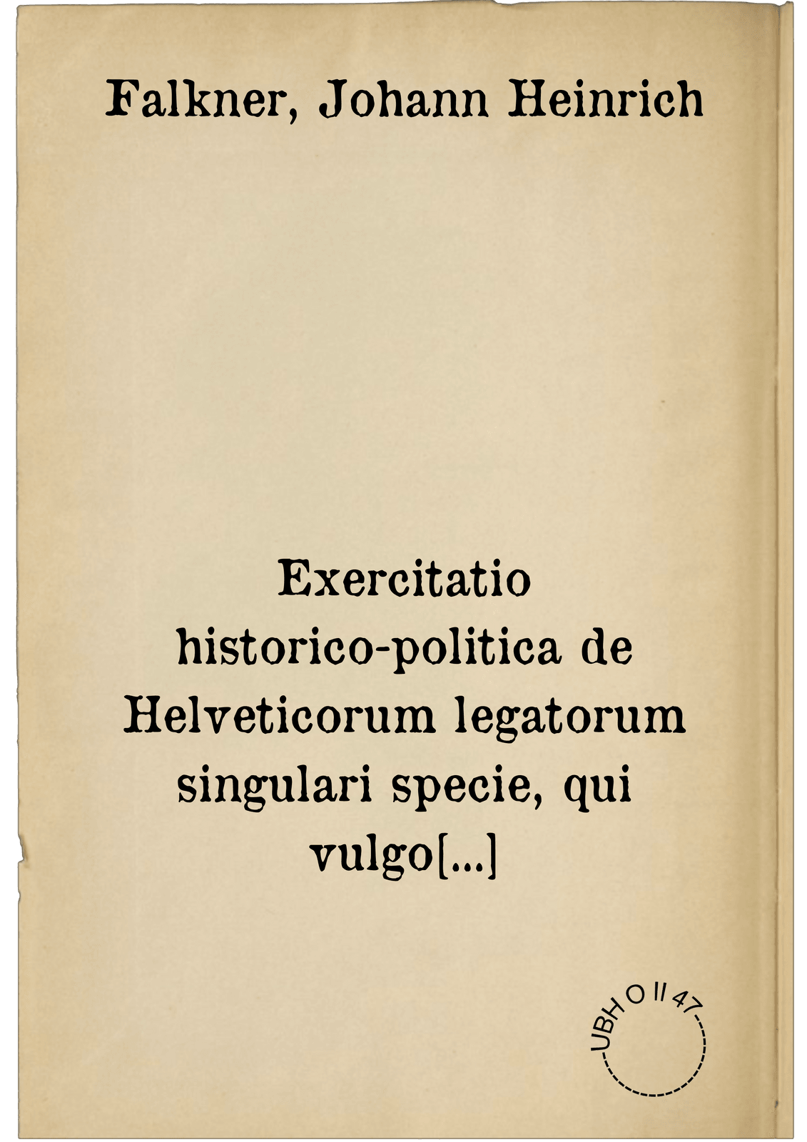 Exercitatio historico-politica de Helveticorum legatorum singulari specie, qui vulgo repraesentantes vocantur