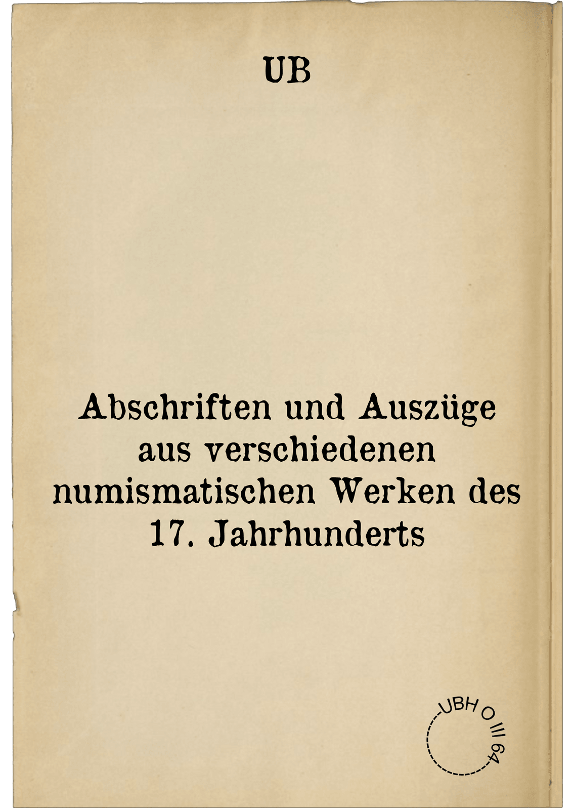 Abschriften und Auszüge aus verschiedenen numismatischen Werken des 17. Jahrhunderts